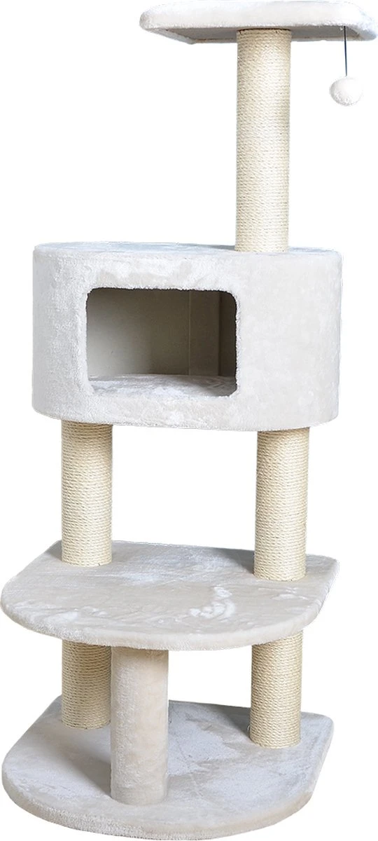 De EBI krabpaal Salisbury is een pluche krabpaal met een hoogte van 140cm en een verhoogd schuilhuisje wat katten erg prettig vinden. Het meubel heeft 3 verdiepen die kunnen worden gebuikt als ligplaatsen of uitkijkposten. Verder heeft de Salisbury maar liefst 5 sisal palen en is er ook een pluche speeltje. Een krabpaal is noodzakelijk voor elke kat voor het onderhoud van de nagels, markeren van het territorium, zich uit te rekken of stress te ontladen. Op hogere oppervlaktes voelen katten zich veilig.