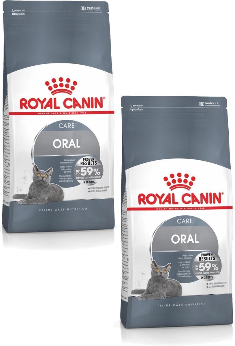 Tandplak ontstaat doordat de tandplakbacteriën calcium op de tanden omzetten in tandsteen. Dit kan leiden tot ontstoken tandvlees, slechte adem en zelfs het uitvallen van tanden.Bij Oral Care otstaat er als de kat op brokken kauwt een schurend effect langs de tanden, waardoor de vorming van tandplak beperkt wordt.Royal Canin Oral Care bevordert onder ander op deze wijze de gebitshygiëne.
